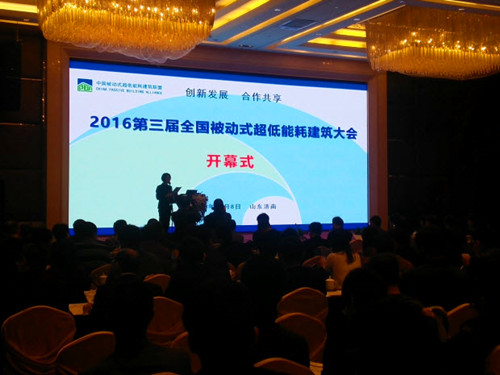 为了凝聚中国被动式超低能耗建筑产业链上下游资源,规范确保行业可持续健康发展,提升中国被动式超低能耗建筑产业化能力,中国被动式超低能耗建筑联盟于2016年12月8日至9日在山东济南召开了“第三届全国被动式超低能耗建筑大会”。来自全国从事被动式超低能耗建筑行业的科研院所、高等院校、房地产、被动式产品部品、高性能能源设备生产商等600余人参加了会议。江苏卧牛山应邀出席并作现场发言。